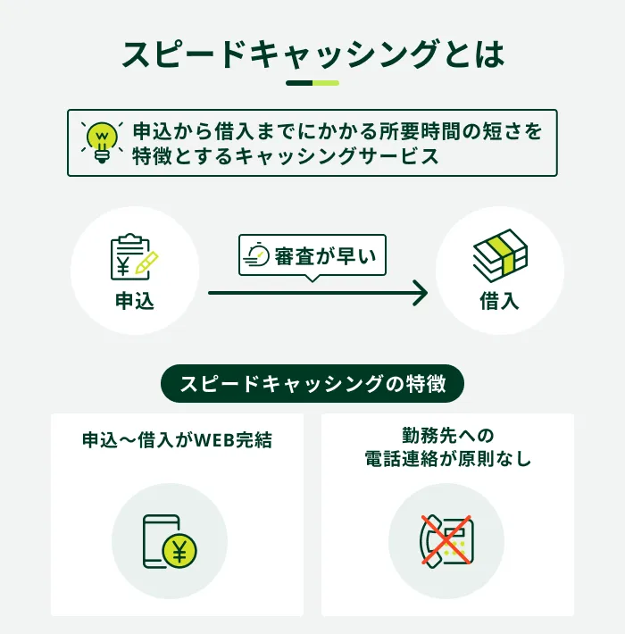 スピードキャッシングとは、申込から借入までの所要時間が短いキャッシングサービスを指します。